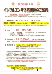 2025(令和7年)インフルエンザ予防接種のご案内